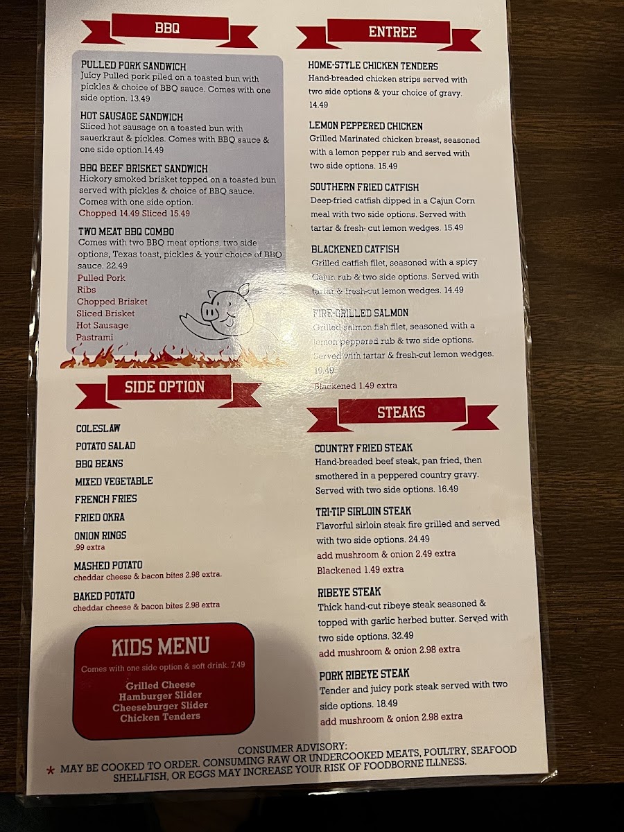 The appetizers are a celebration of crunch and flavor, featuring crispy Fried Pickles and savory Catfish Nuggets. For the main event, the juicy Pulled Pork Sandwich and tender Beef Brisket Sandwich are not to be missed; each bite is a testament to their smoking prowess. The fresh salads, like the Fisher Peak Salad, add a refreshing balance to the rich flavors.
